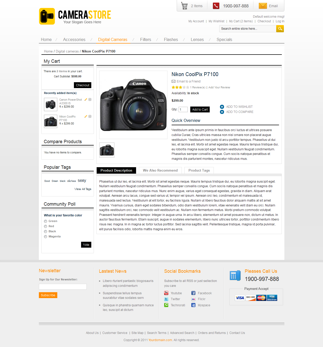 Best suits for camere store, computer store, furniture store, hitech store, electronic store,mobile store, add-ons store, apparel, fashion store and then any Magento store as needed a simple personalization template.