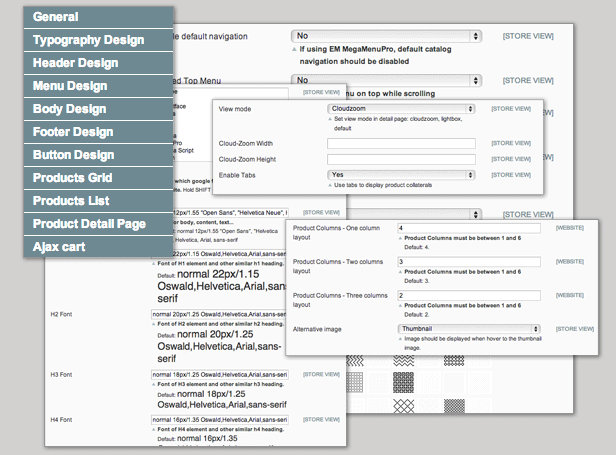 - Designing image dimensions and image background color on product grids, product detail page, related items, upsell, crosssell, shopping cart software